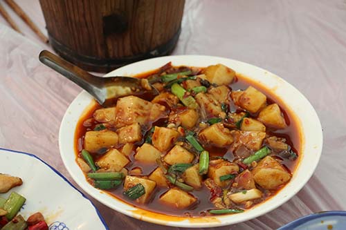 Typically people stay in Shawan where there are a few good and cheap local restaurants, serving foods suitable for all (including vegetarians, vegans). Sichuanese food is famous in China for its taste and spiciness!